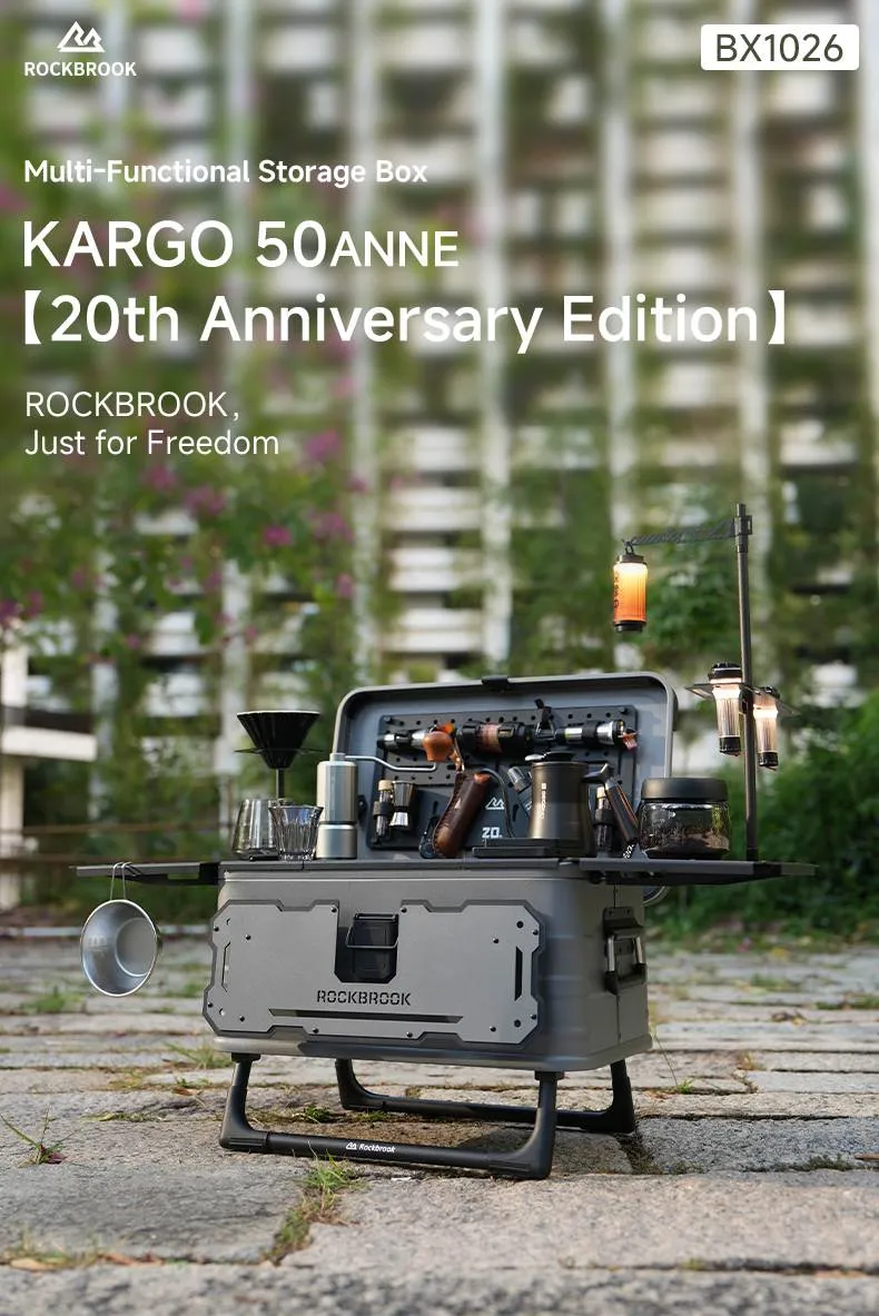صندوق تخزين للتخييم مع طاولة، سعة 50 لتر