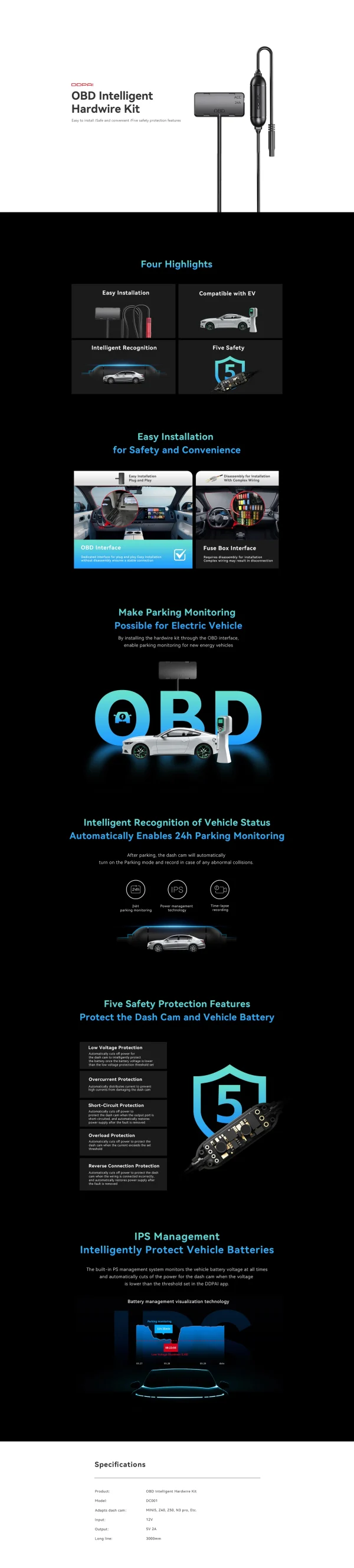 طقم توصيل الأسلاك الذكي DDPAI OBD
